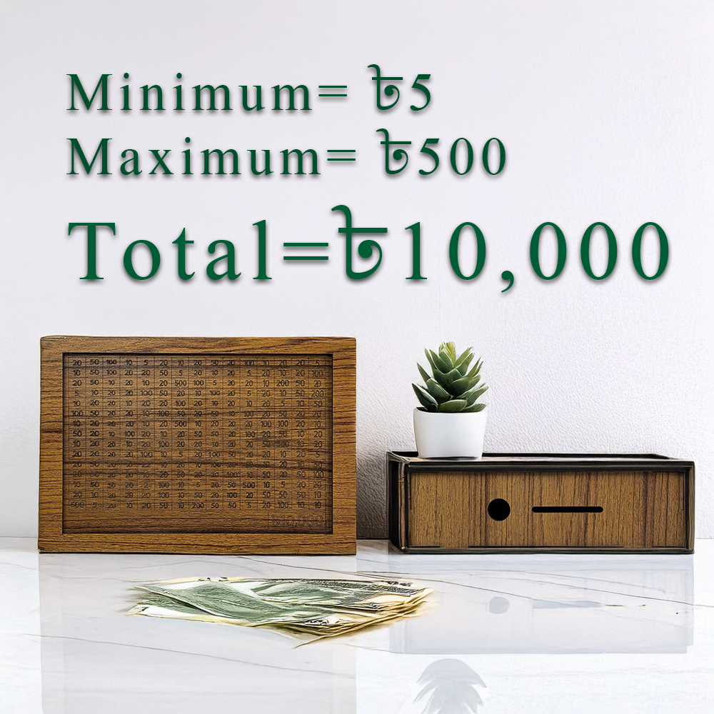 - পুরো সিস্টেমটি এমনভাবে ডিজাইন করা, যেখানে আপনি ছোট পরিমাণে টাকা জমা দিয়ে ১০,০০০ টাকা সঞ্চয় করতে পারবেন।